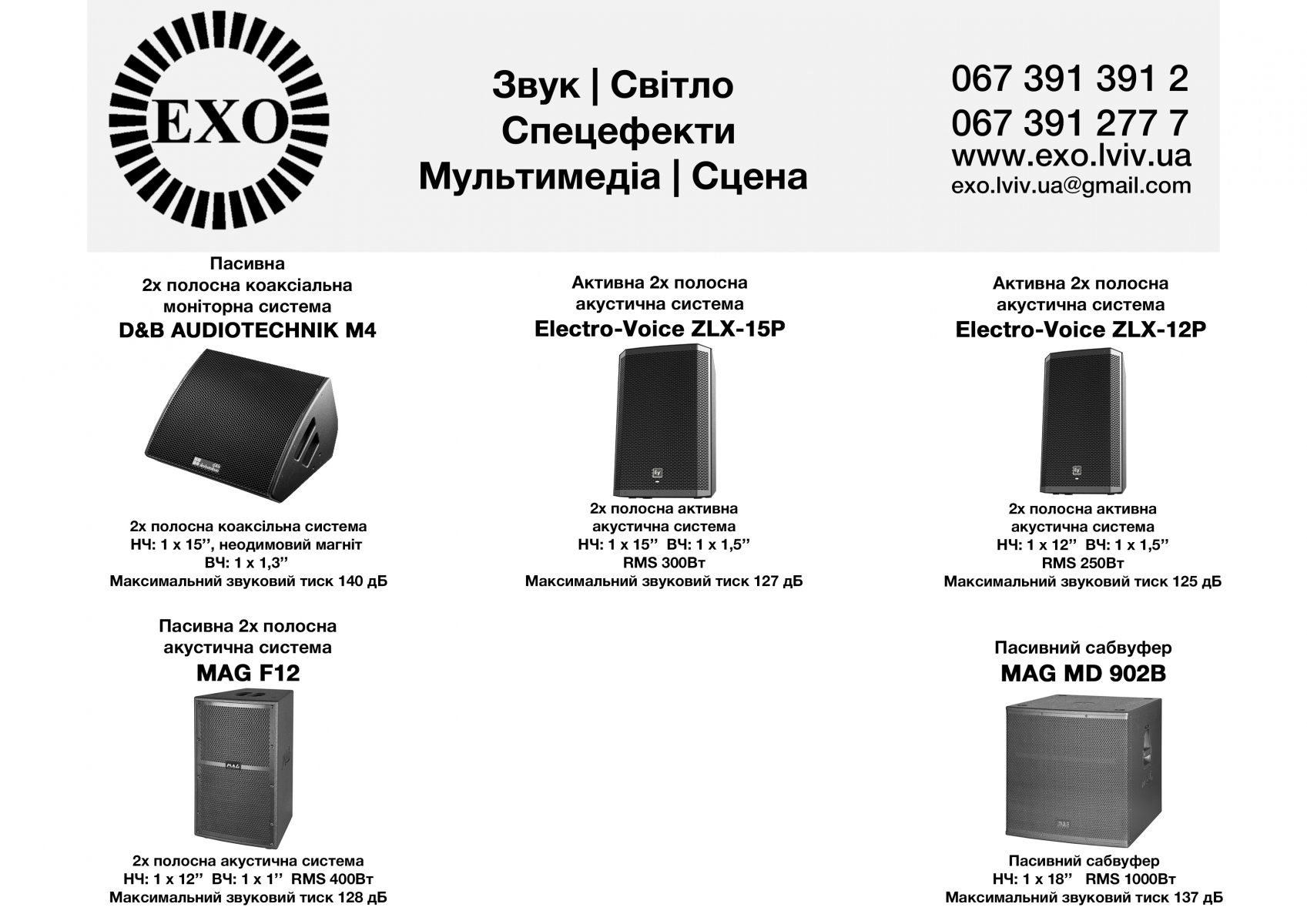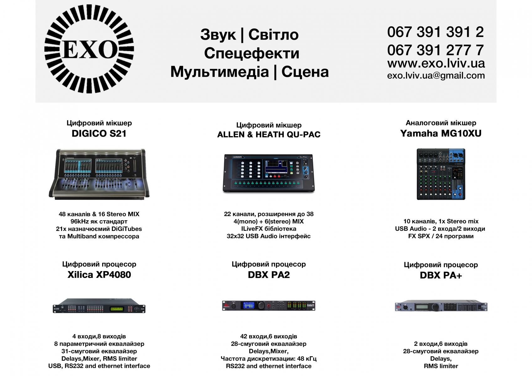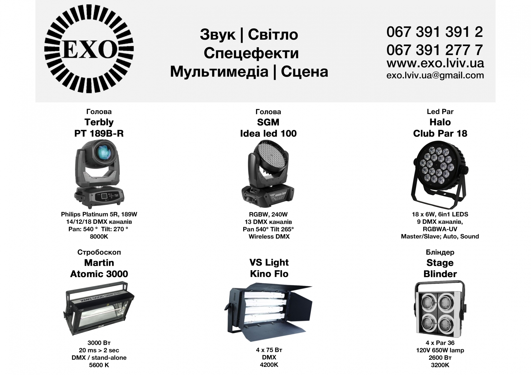 Звук | Світло | Мультимедіа | Спецефекти | Сцена