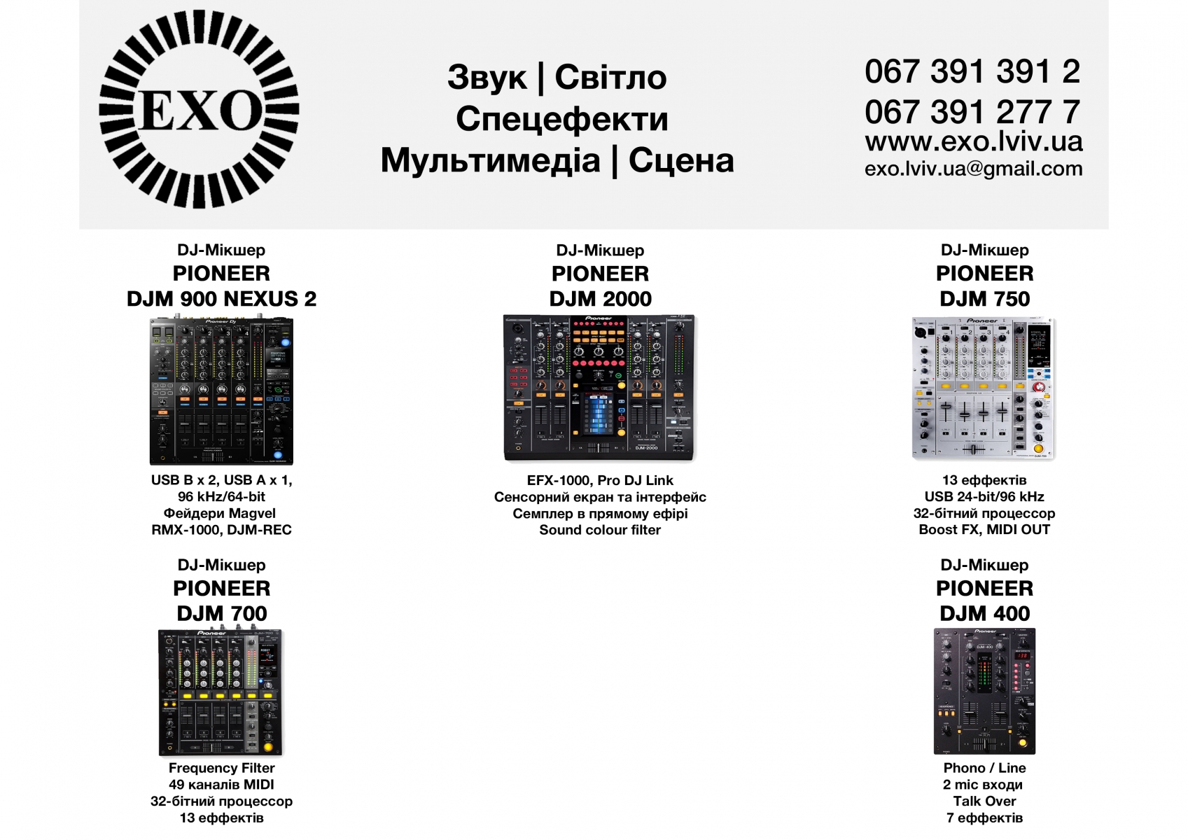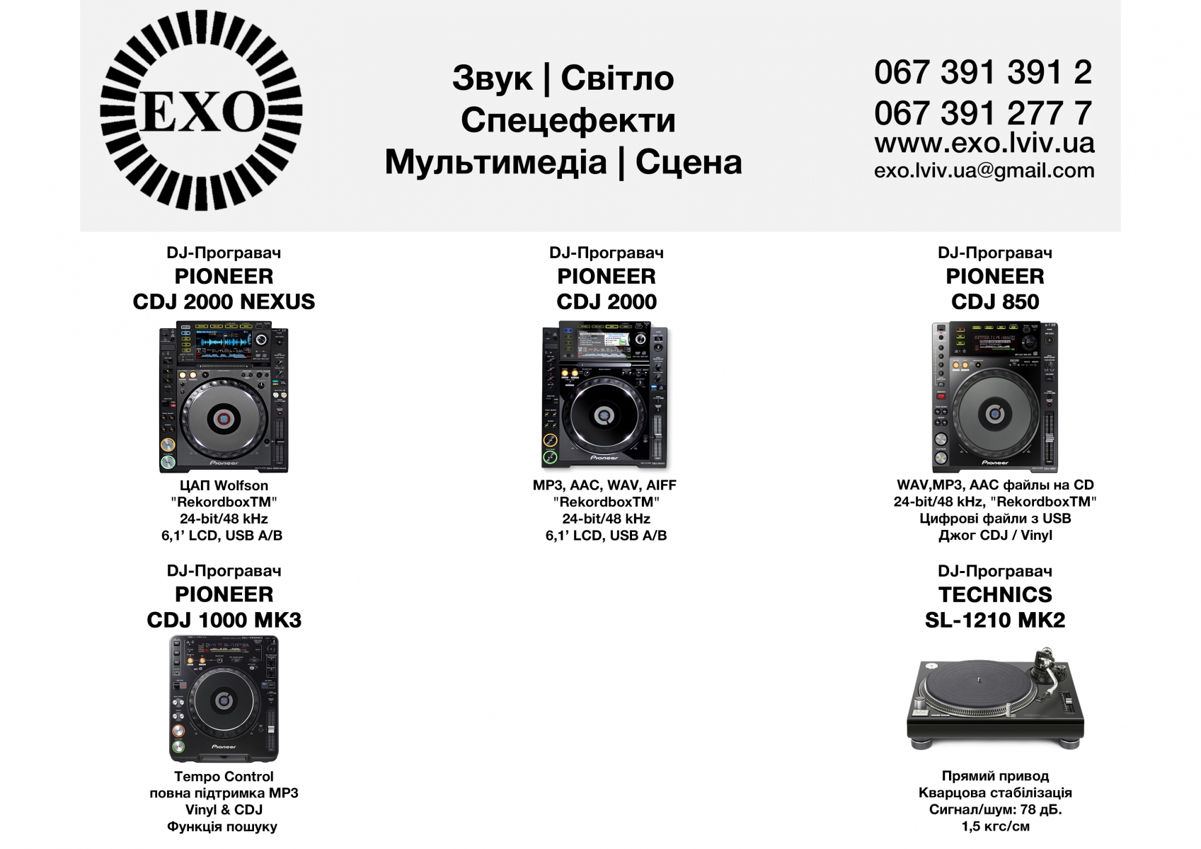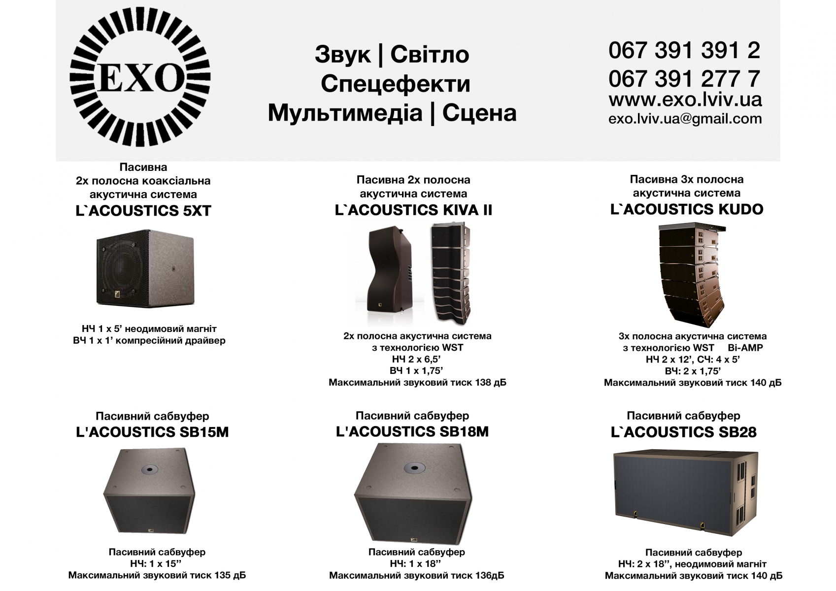 Звук | Світло | Мультимедіа | Спецефекти | Сцена